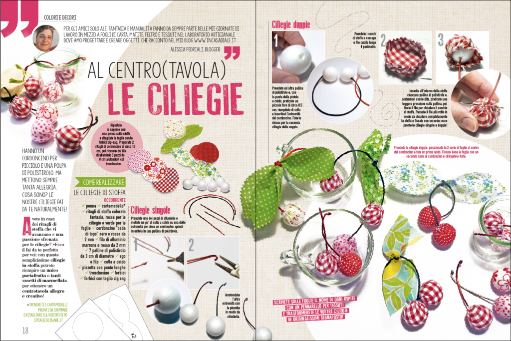 Avete in casa dei ritagli di stoffa che vi avanzano e una passione sfrenata per le ciliegie? Ecco il fai da te perfetto per voi: con queste semplicissime ciliegie in stoffa potrete riempire un unico portafrutta o tanti vasetti di marmellata per ottenere un centrotavola allegro e creativo!